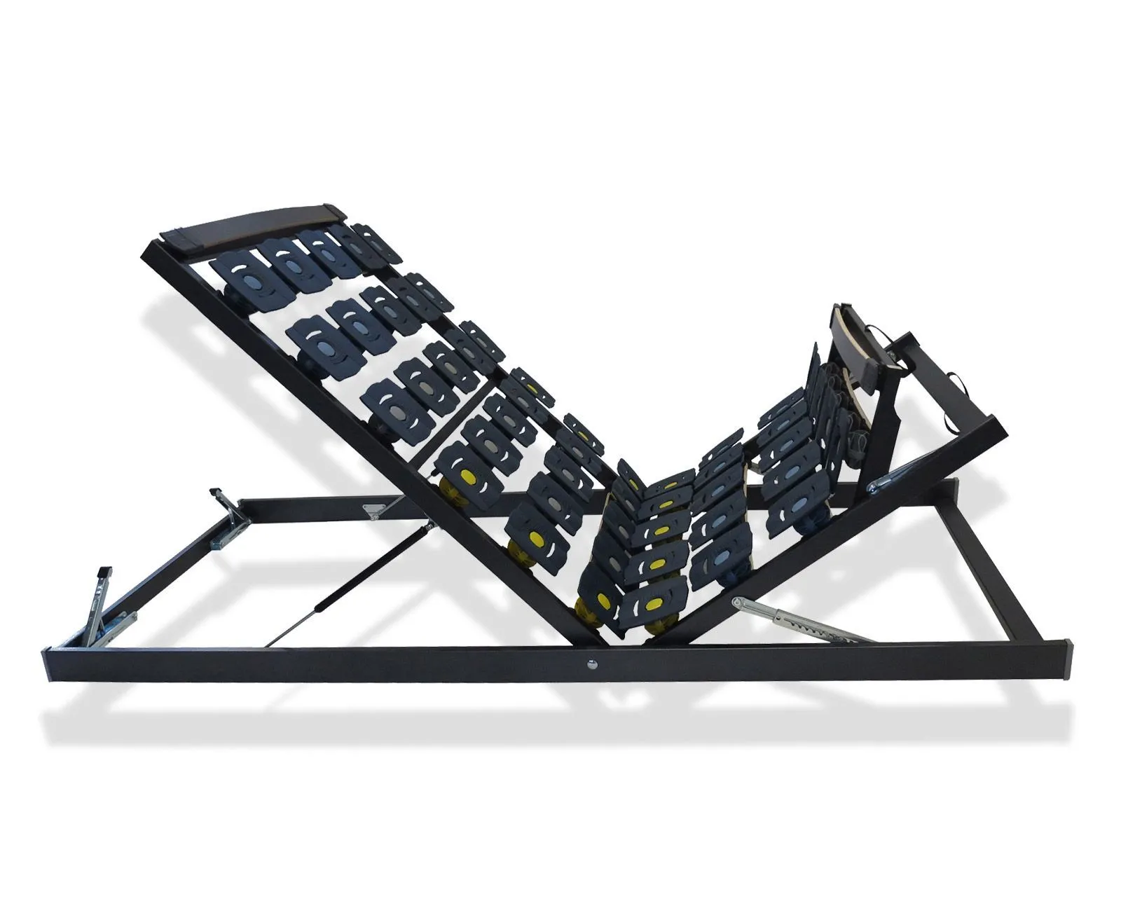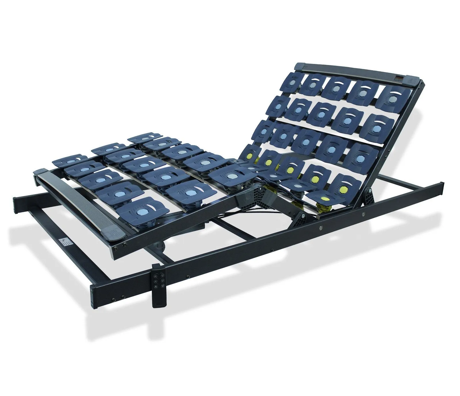 The "Wellness" Flat-MOT bed base is the premium model of the series, offering a flat, motor-driven head and foot adjustment with just 4 cm of ground clearance. This version combines state-of-the-art technology with a sleek design to provide you with ultimate comfort and an aesthetically pleasing sleep environment.